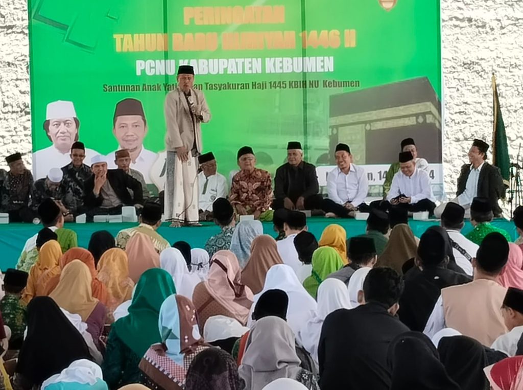 Kegiatan yang dirangkai peringatan Tahun Baru Hijriyah 1446 pun diisi tasyakuran haji dari KBIH PCNU Kebumen. Doa tahlil dikumandangkan dengan diiringi solawat. Tampak larut dalam lantunan doa dan solawat jajaran PCNU, LAZISNU, UPZISNU dan jamaah haji yang dibimbing KBIH PCNU Kebumen. Tidak ketinggalan dari MWC NU yang mendampingi para penerima santunan.